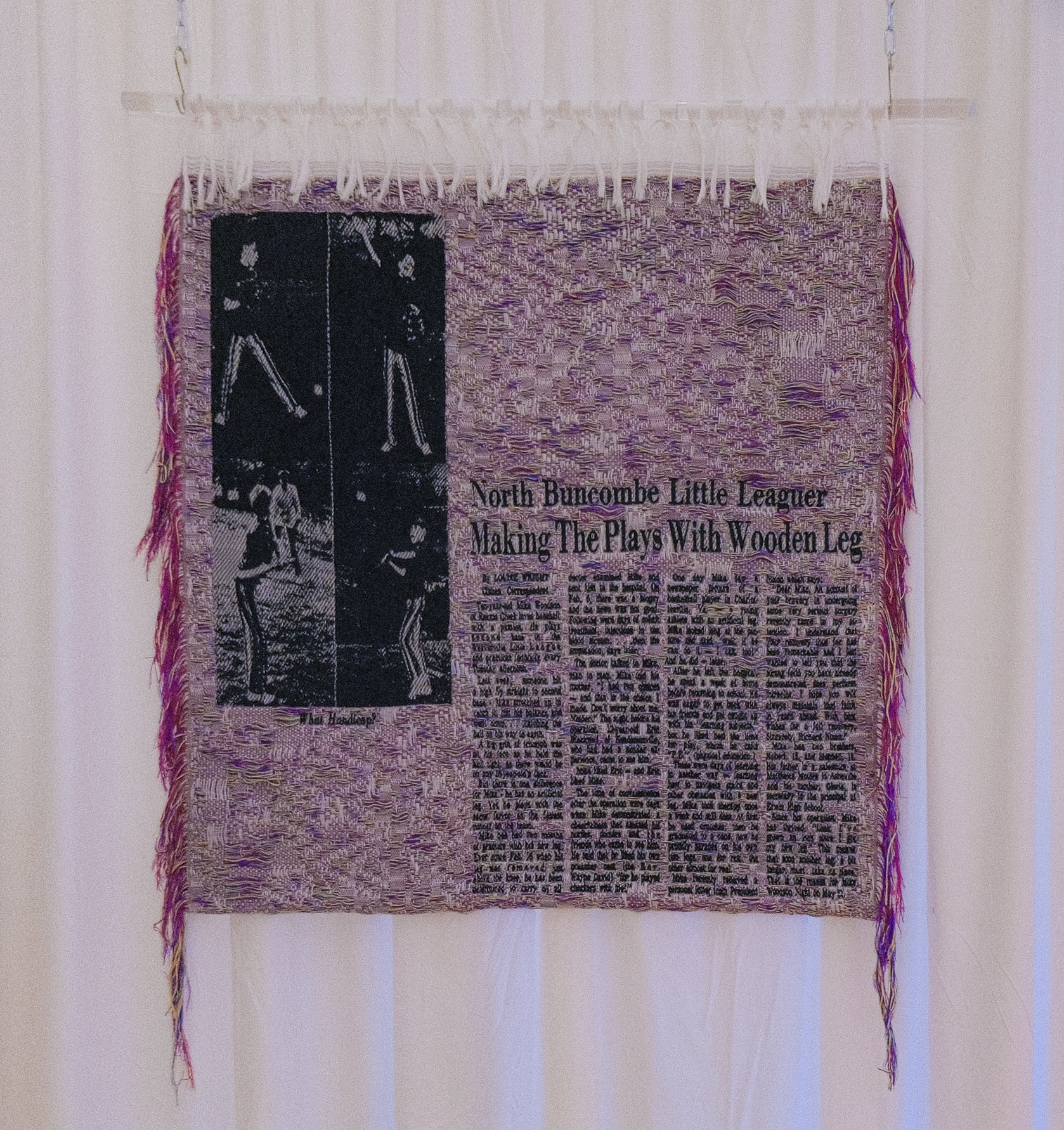 Heirlooms is a handwoven copy of a newspaper story written about my father in 1971. The piece relies on the colorful patterned background to abstract the subject matter of the article. It comments on the way trauma is reinterpreted and processed over time.