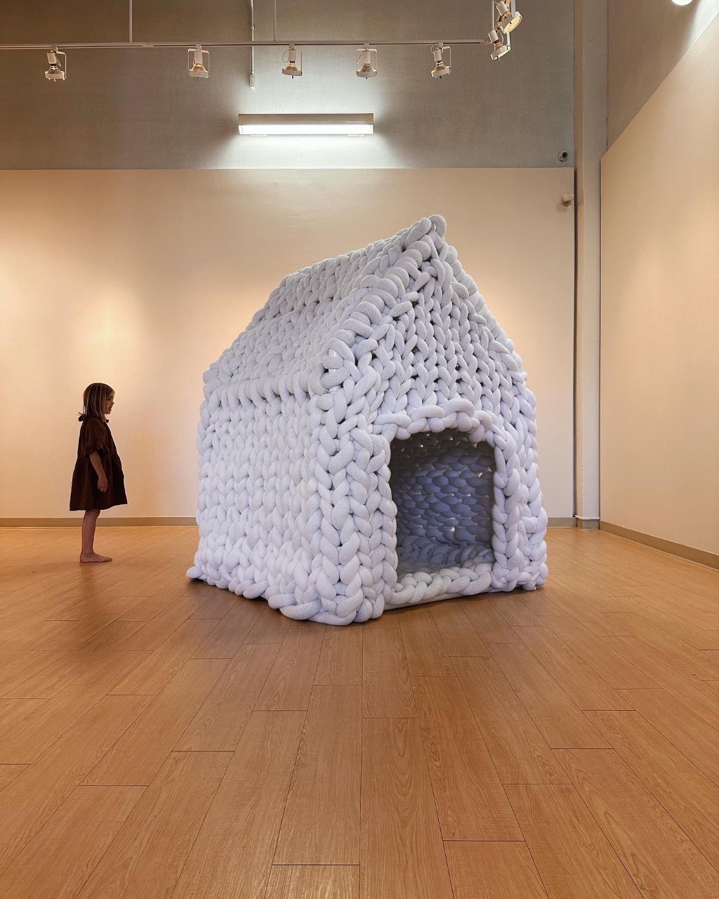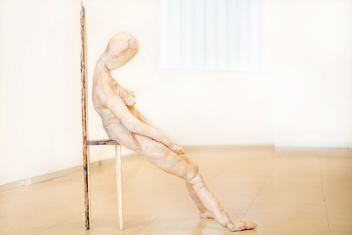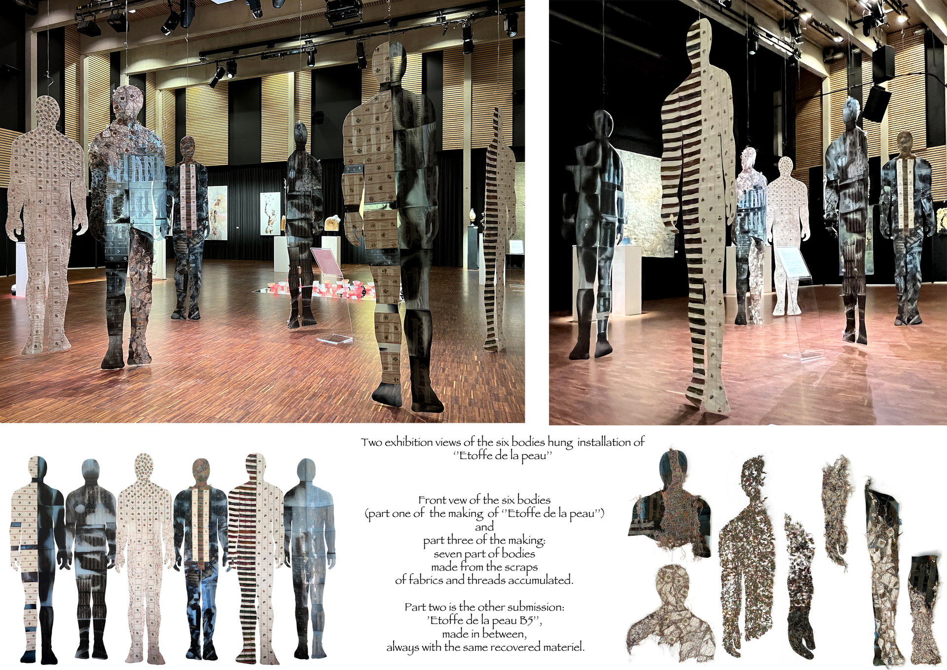 This installation is part of a series of works on the textile anatomy and the second life of materials, that constitute ethical as well as aesthetic acts and offer a reflection on the problems related to overconsumption and waste to be recycled.It was carried out from discarded materials.