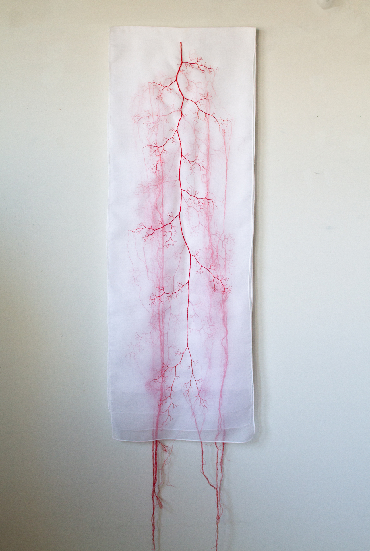 The creatives begin dreaming; they look to their arsenal of tools; needles, thread, paper, hand-spun fibers, looms, cloth, discarded objects, technology, or the natural world. The artists begin innovative production by creating symbiotic relationships with their chosen mediums and committing to many tedious processes.