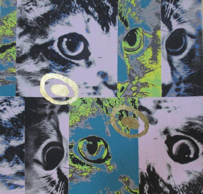 - Kathleen Williams “The Eyes Have It” 2017, Mixed media, 12” x 12” x 0”. Website: www.kathleensheltonwilliams.com