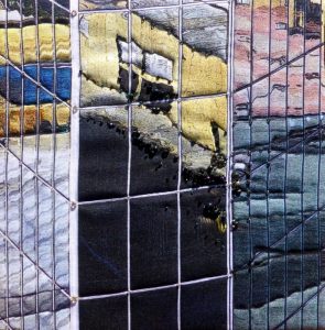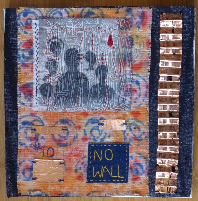 - Ann Darling “NO WALL” 2017, Fiber/mixed media, 12” x 12” x 1.5”.