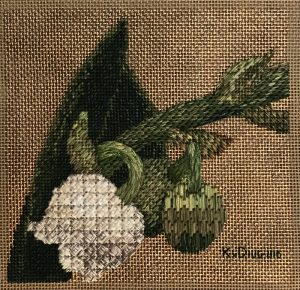 - Katherine Diuguid “Lily of the Valley” 2017, Canvaswork embroidery, 8” x 8” x 0”. Website: www.katherinediuguid.com