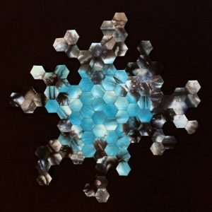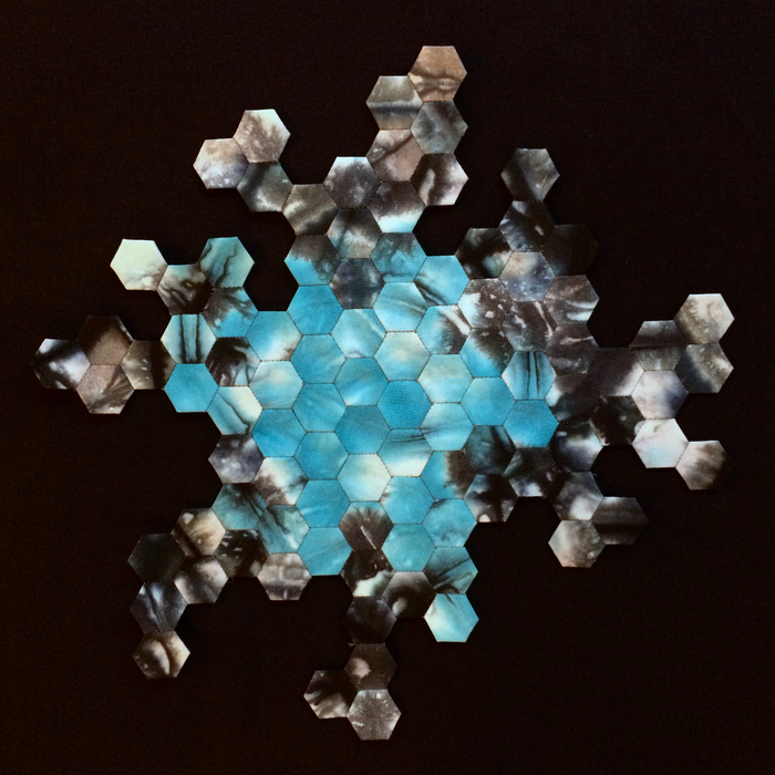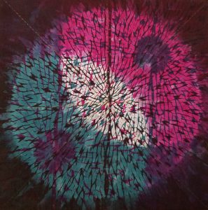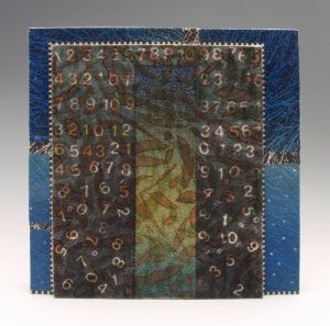 - Beverly Arsem “Chaos, Hope (Full)” 2015, Fiber art, 12” x 12” x 1.5”. Website: www.xomastudio.com