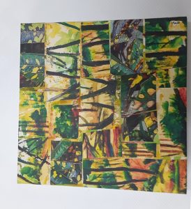 - Keith Cadette “Tropikal” 2017, Watercolor painting, digital photography, transfer printing; 12” x 12” x 1”