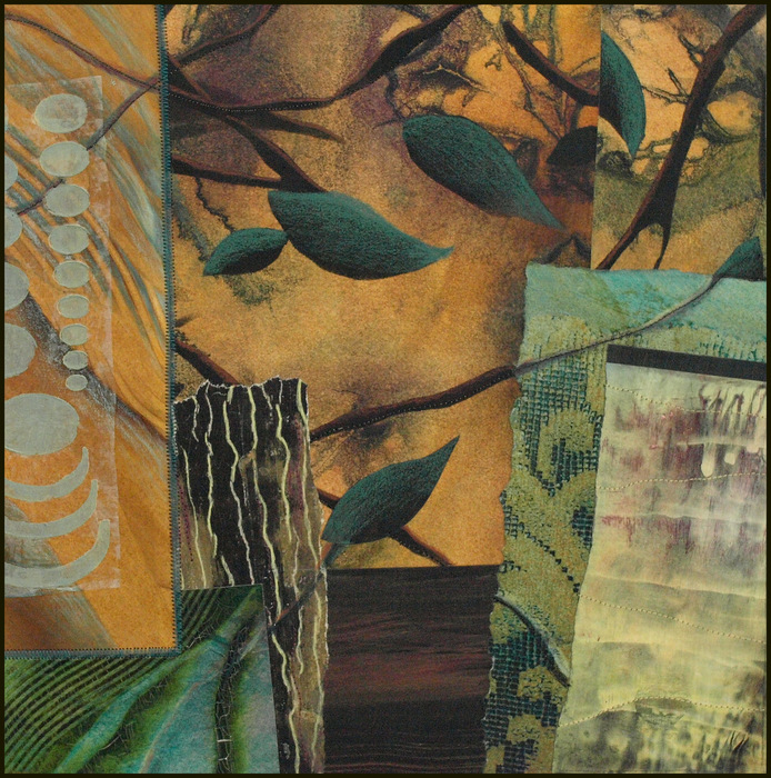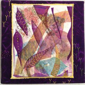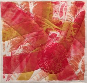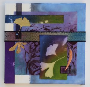 - Astrid Hilger Bennett “Botanical Fragment” 2017, Handpainted/printed fabrics, mixed media, stitching, drawing; 12” x 12” x 1”. Website: www.astridhilgerbennett.com