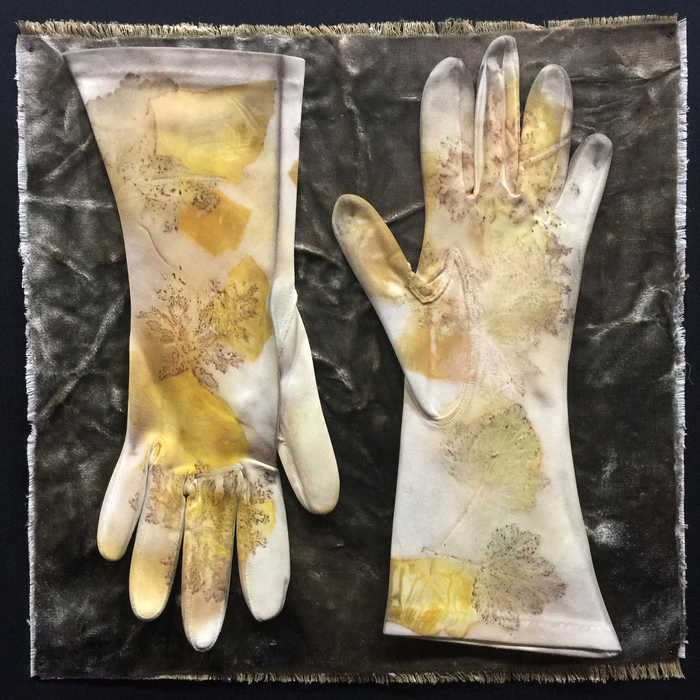 - Thomas Roach “Trinity Stones” 2017, Breakdown printing with natural dyes on raw silk, stitching; 12” x 12” x 1.5”. Website: thomasroach.ca