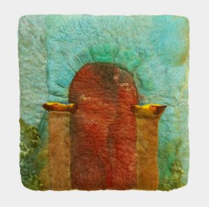 - Melanie Siegel “Upon the Doorpost” 2017, Felt, embroidery, mixed media, 12” x 12” x 1”