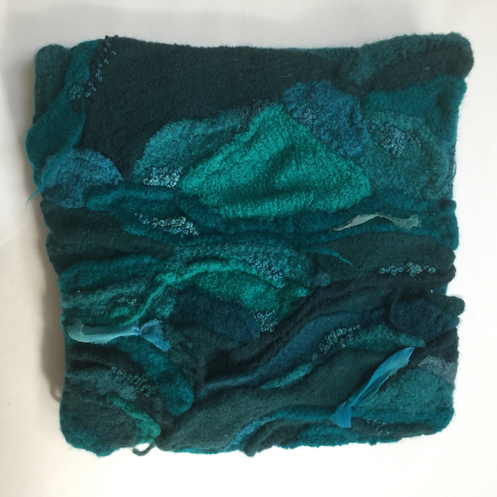 - Jorie Johnson “Sumi Series: Aerial Blue” 2017, Dyeing, feltmaking; 12” x 12” x1.5”. Website: www.joirae.com