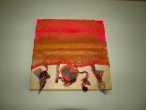 - Katriina Flensburg “Mirage” 2015, Stitched exercise with painted and printed tissues, 12” x 12” x 1.5”. Website: www.katriinaflensburg.se