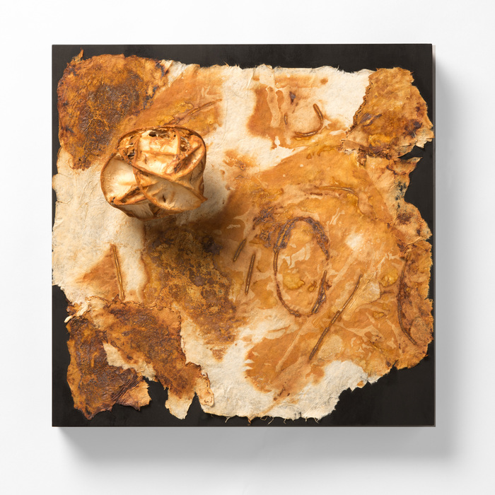 - Teddy Milder “Relicyries Fractal” 2017, Abaca pulp, rusted hand-made paper, wire, and ixtle thread; 12” x 12” x 1.5”. Website: www.tmilder.com
