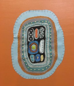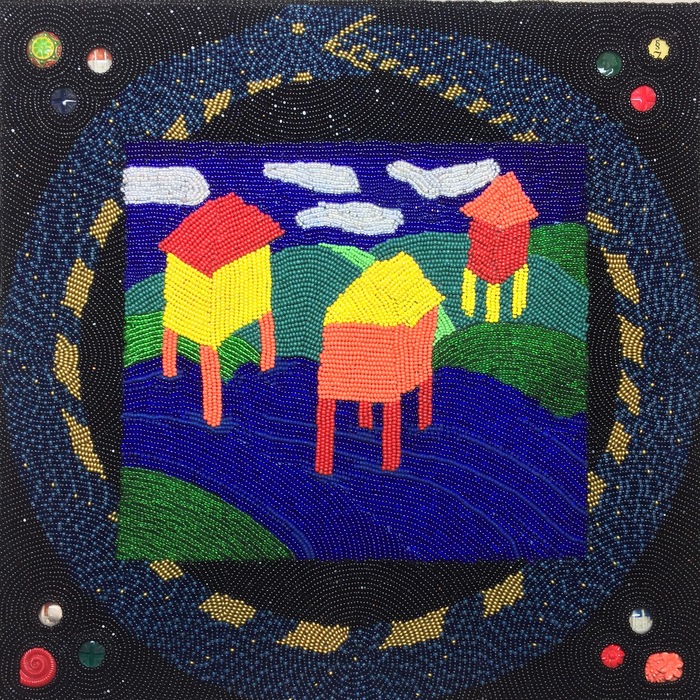 - Jennifer Whitten “Dream Dwelling” 2017, Bead embroidery, 12” x 12” x 1.5”. Website: www.jenniferwhitten.com
