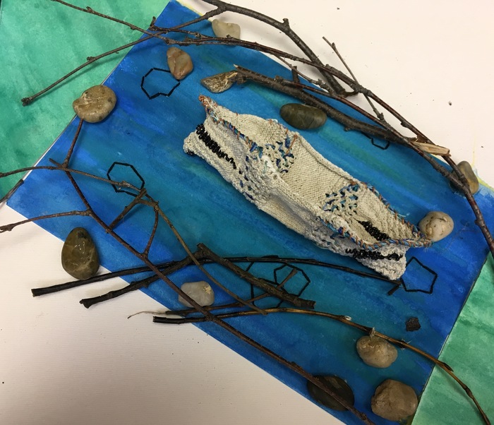 - Myrna Tatar “Box Box Goes To School” 2017, Paper, plastic, cotton, embroidery thread; 12” x 12” x 2”. Website: www.myrnatatar.com