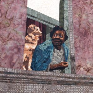 - Maggie Dillon “A Woman and Her Dog, Harlem 1943” 2017, Batik fabric, cotton thread; 12” x 12” x 1.5”. Website: www.maggiedillondesigns.com
