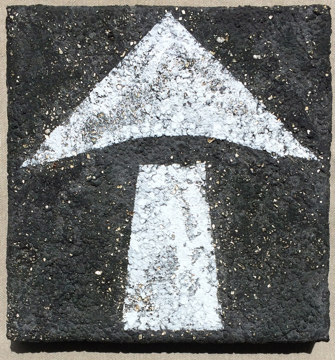 - Chris Carpenter “Arrow on Pavement” 2017, Textile paints, 12” x 12” x 1.5”.