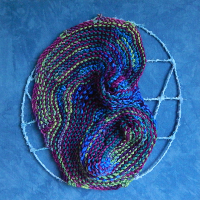 - Ingrid Lincoln “Carnival” 2017, Knitted silk and wire, sublimation dyed fabric paint; 12” x 12” x 1”.