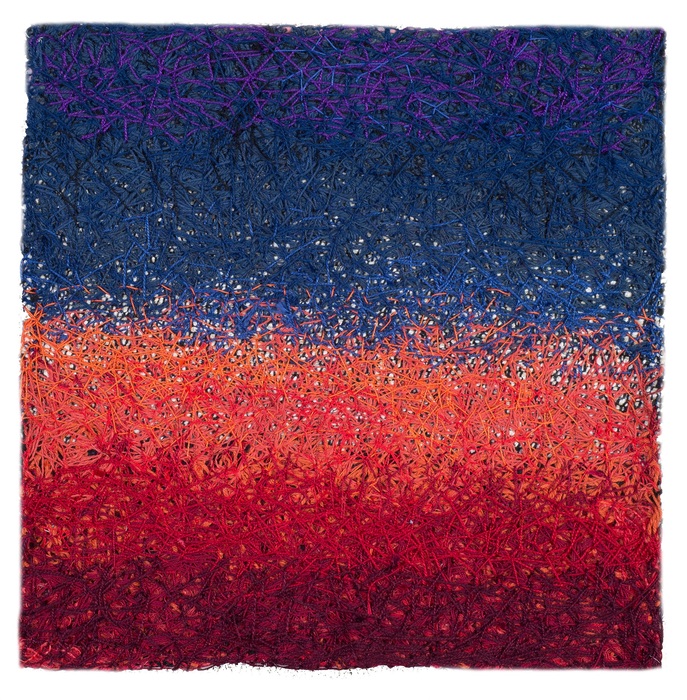 - Shinhee Chin “Daybreak” 2016, Perle cotton, embroidery floss, wool, yarn; 12” x 12” x 0”. Website: www.shinheechin.com