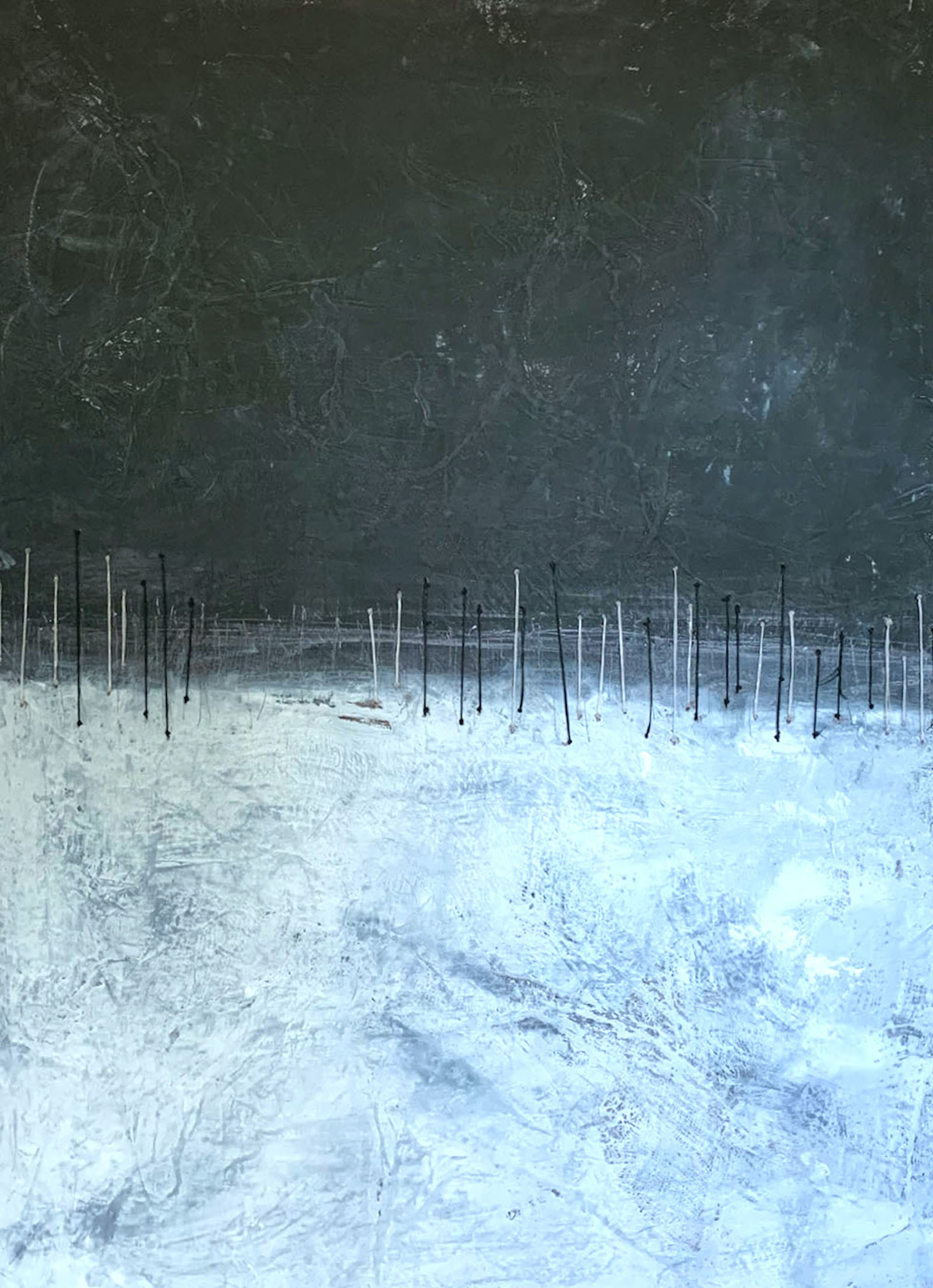 Oil paint, cheesecloth, paper, coldwax, artificial sinew (38" x 28")