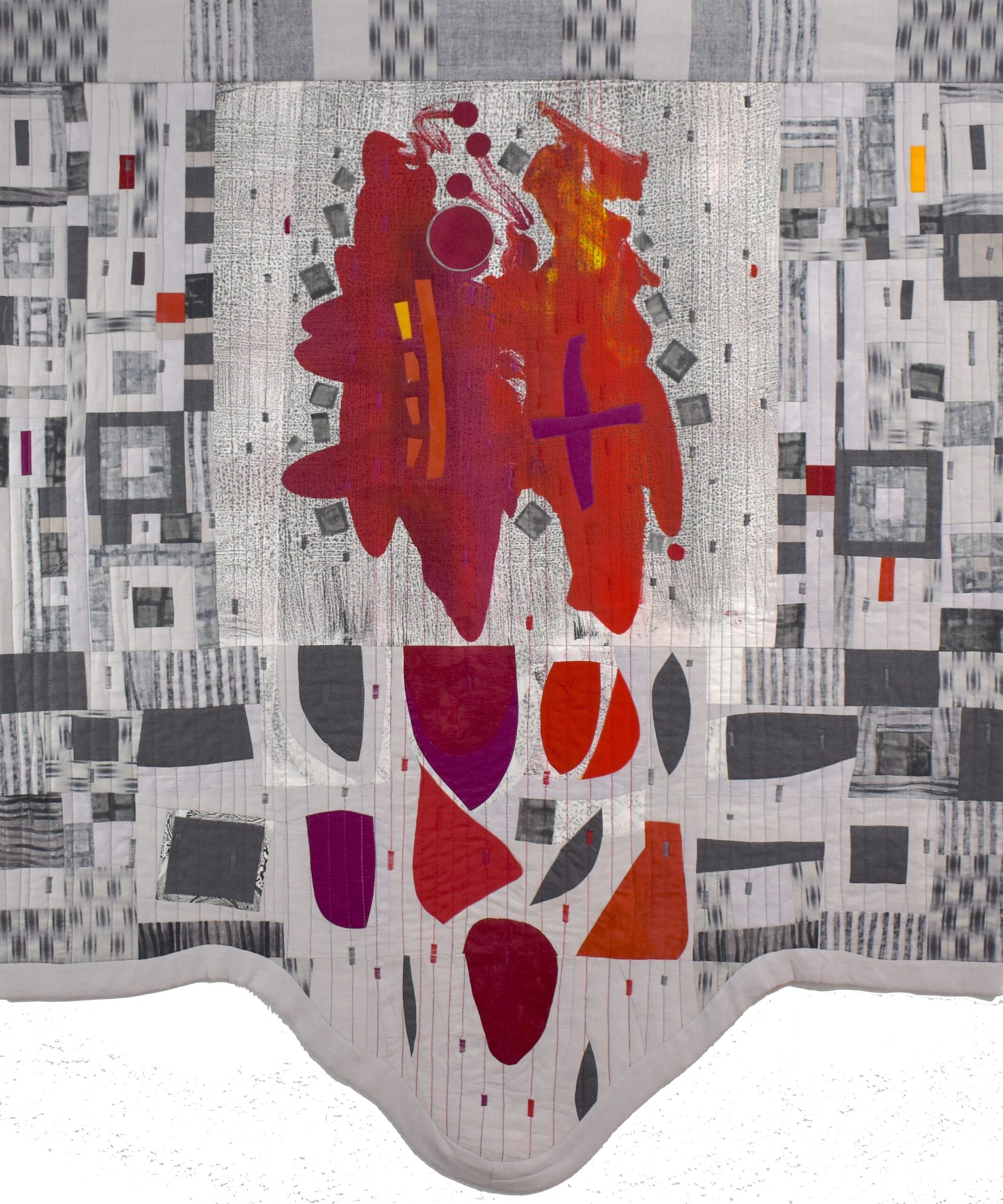 Textile paint, silk, batiks, thread (11" x 17")