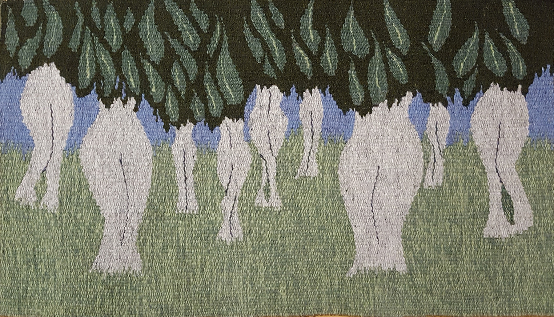 The forest is a paradox of tension. It is a reminder to stand tall and hold ground, yet remain flexible. Tapestry is also a paradox of tension. It is a partnership between a warp under significant tension and the soft, floppy weft reliant on that tension to create form. When tension arises in life, the human tendency is to try and eliminate it. Feminine Forest is a reminder that the exertion of equal and opposite forces foster strength and balance. www.LoomingArt.com