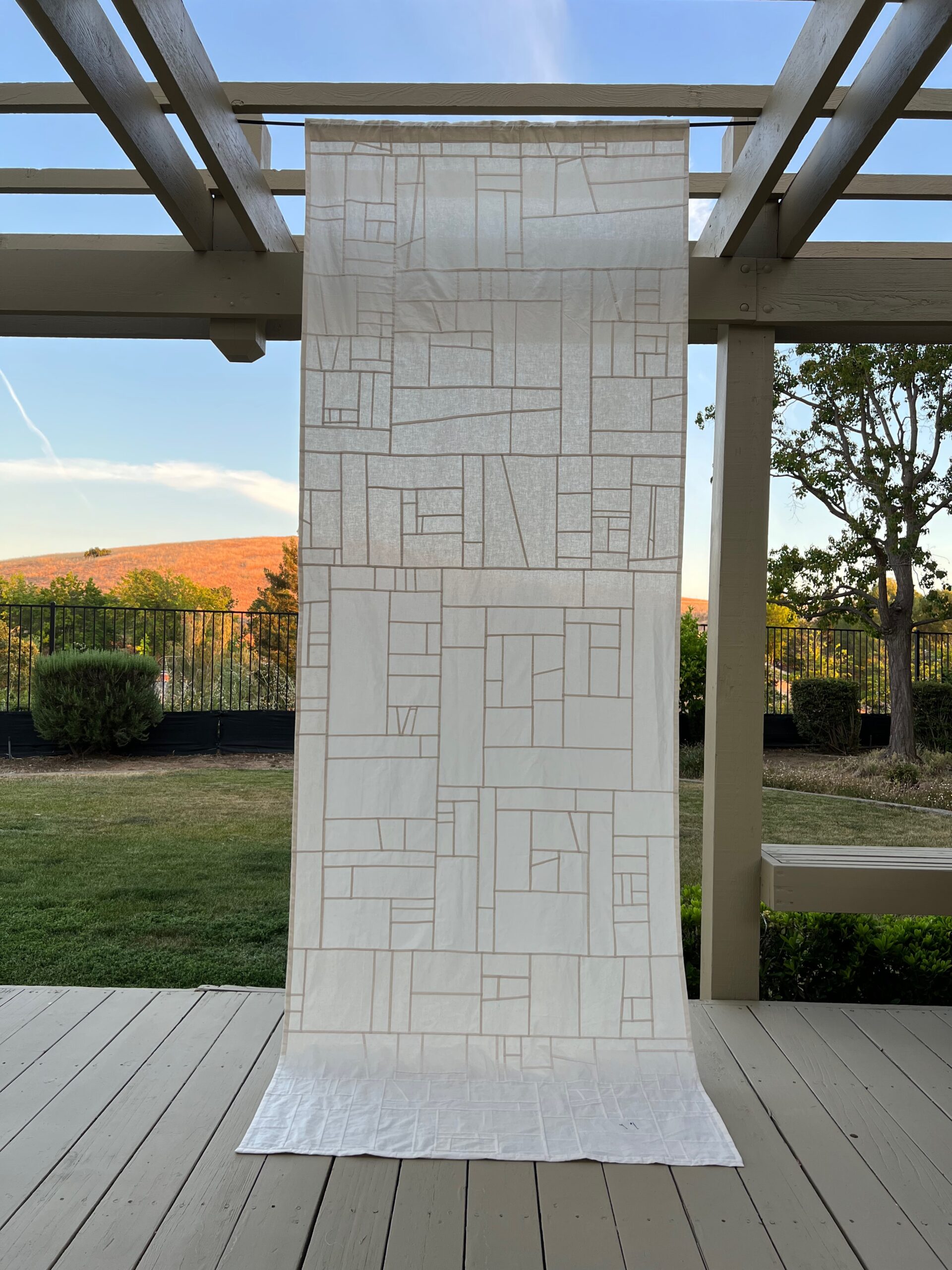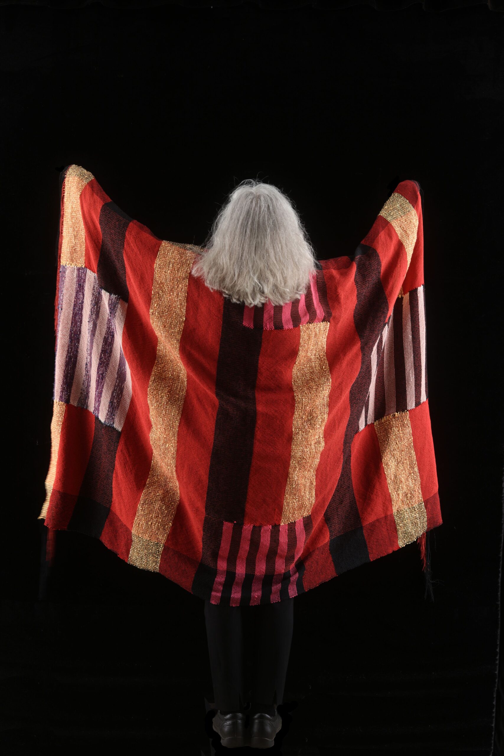 This ceremonial cloth has a dual purpose. It is meant to be worn both as a celebratory cloak as we emerge from sheltering into socialization and gatherings. And in the end its intention is a shroud, covering my body in a last textile ritual before cremation.