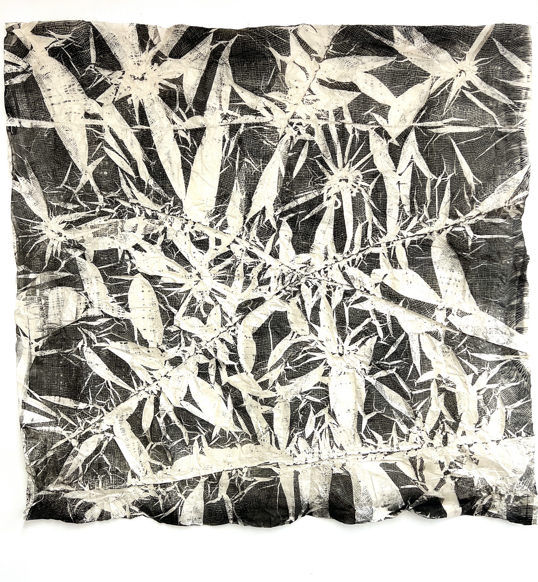 Monotype with etching ink on kozo paper [36 in x 36 in]