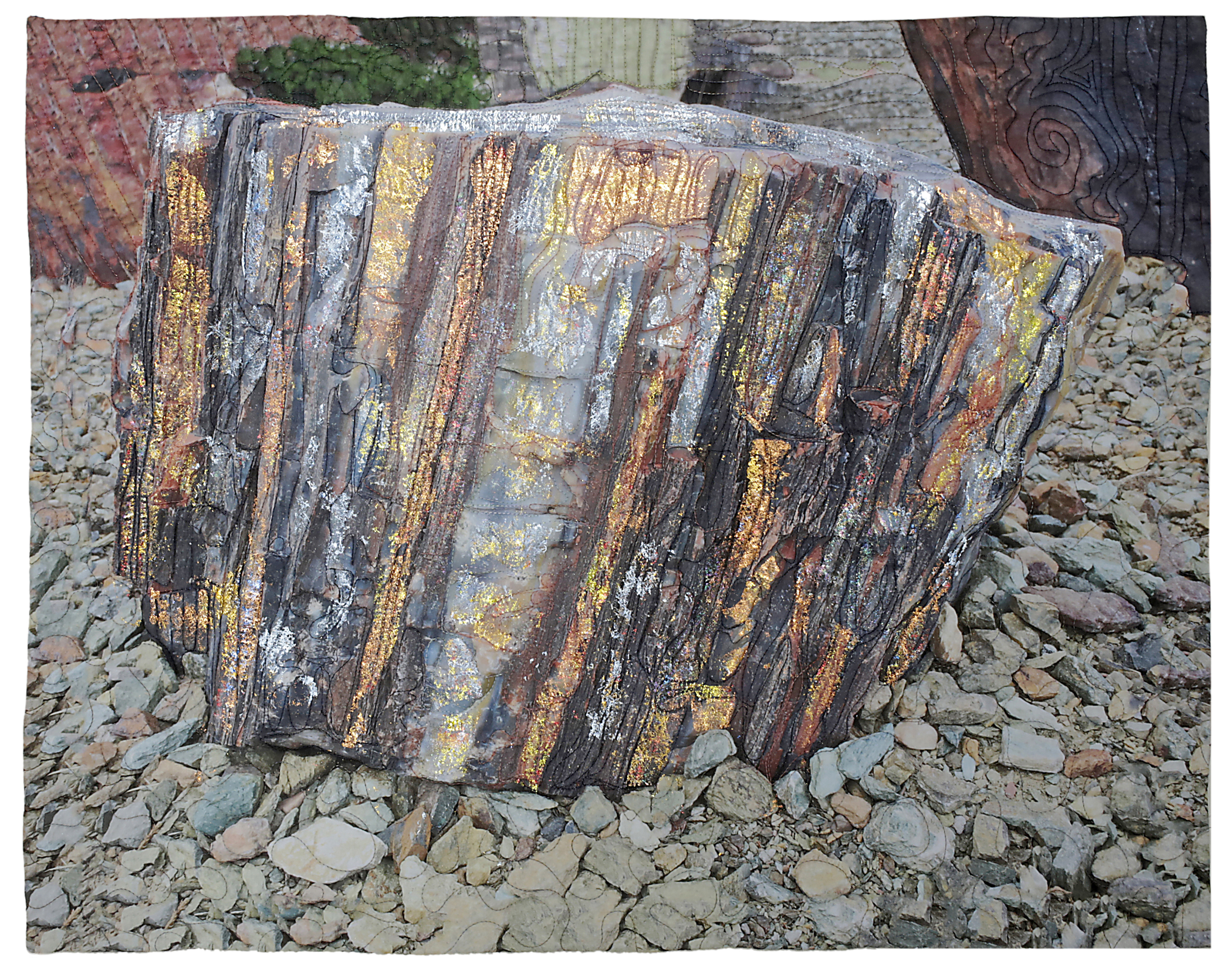 silk, cotton, photo, ink, foil, thread [32 in. x 27 in.]