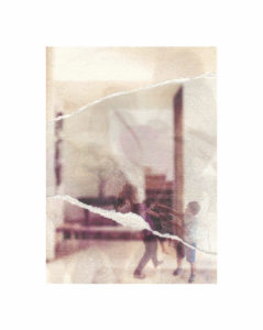 Michele Landel creates textured collages using burned, quilted, and embroidered photographs to explore the themes of exposure, absence, and memory. Layers of paper are sewn together to construct bandages and veils, in turn, transforming images into fragile maps of remembrance.