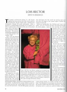 This week’s Forty Year Flashback comes to us from the Spring 1991 Journal “Education” and features Lois Rector talking about her artist-in-residence experience at the Pinellas County Arts Council in Florida.