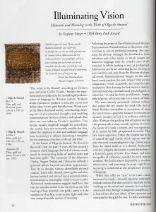 This week’s Forty Year Flashback comes to us from the Winter 1999 Surface Design Journal “NEW New Tools” with the article “Illuminating Vision: Materials and Meaning in the Work of Olga de Amaral” by Twylene Moyer.