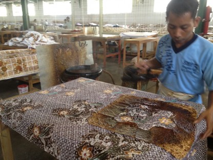I had learned the basic process of batik – hot wax applied as a resist to cloth that is dyed – as an undergraduate at Maryland Institute, College of Art. The communicative power of batik, an art form that permeates Indonesia culture and society, compelled me to enter the competition. More than just a method for embedding pattern into cloth, it’s a living symbolic language with regional inflections of color, process and technique.