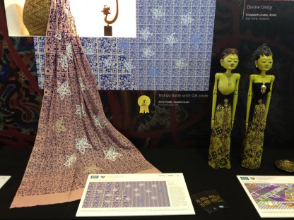 First Round of Judging: A “People’s Choice” design was chosen (2nd from right in photo) during the Indonesian Festival in Washington DC in July 2011, from designs that were digitally printed on paper and displayed. Later that summer a panel of batik experts (including 3 Americans) and Indonesian cognoscenti selected 8 additional finalists – this time by viewing the digital images online.