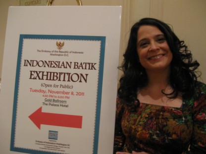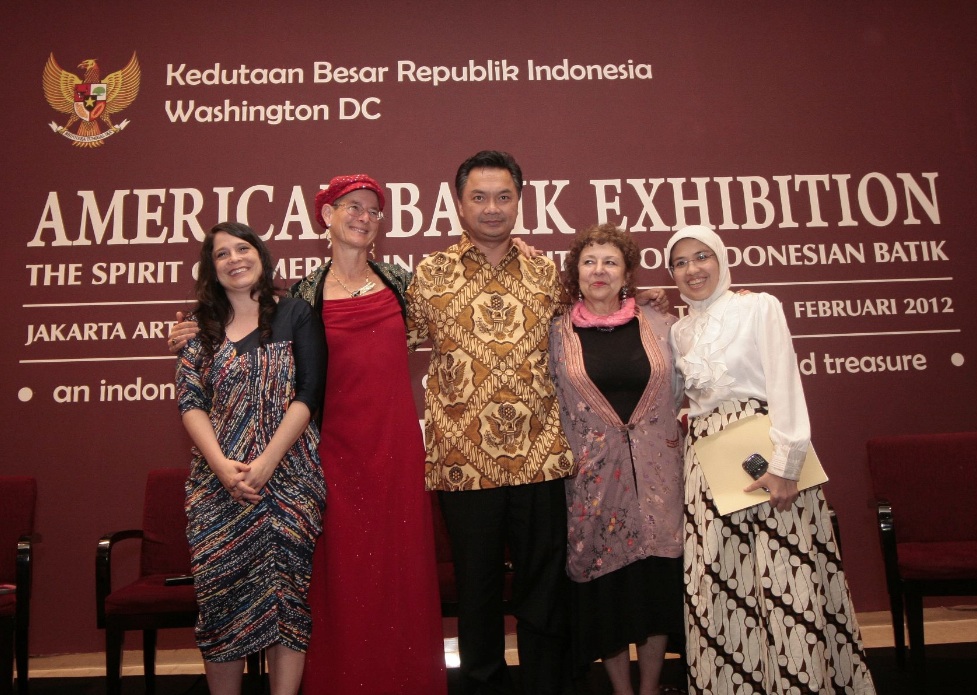 As winning contestants, the 3 of us were treated like cultural royalty and quickly became a troupe of giggling and excitable companions. The highlight of the trip was an exhibition and press conference at the Grand Indonesia, a prominent, high-end retail market center in Jakarta that was hosted by Ambassador Djalal and his wife. (All 9 winning designs were exhibited from February 22 to March 4, 2012, at Grand Indonesia in Central Jakarta and from March 6 – 31, 2012 at the Jakarta Textile Museum in West Jakarta.)