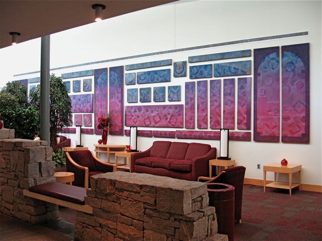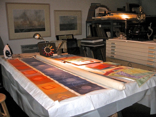 With paint you stay on the surface of the fabric leaving its fundamental structure untouched. Dye changes the nature of the threads and penetrates to the core of the fabric. In each process, shapes & colors are used to express thought.