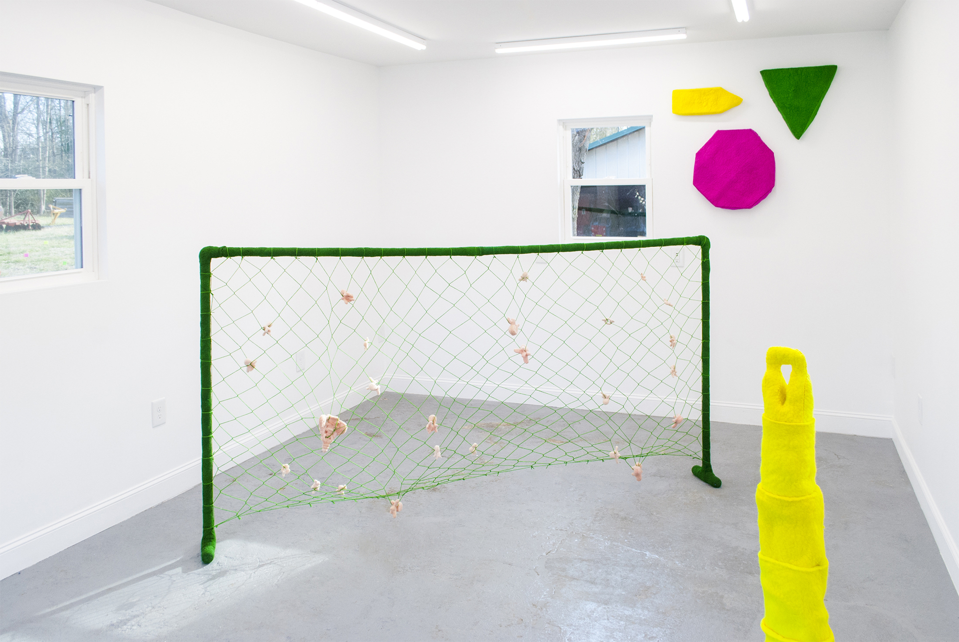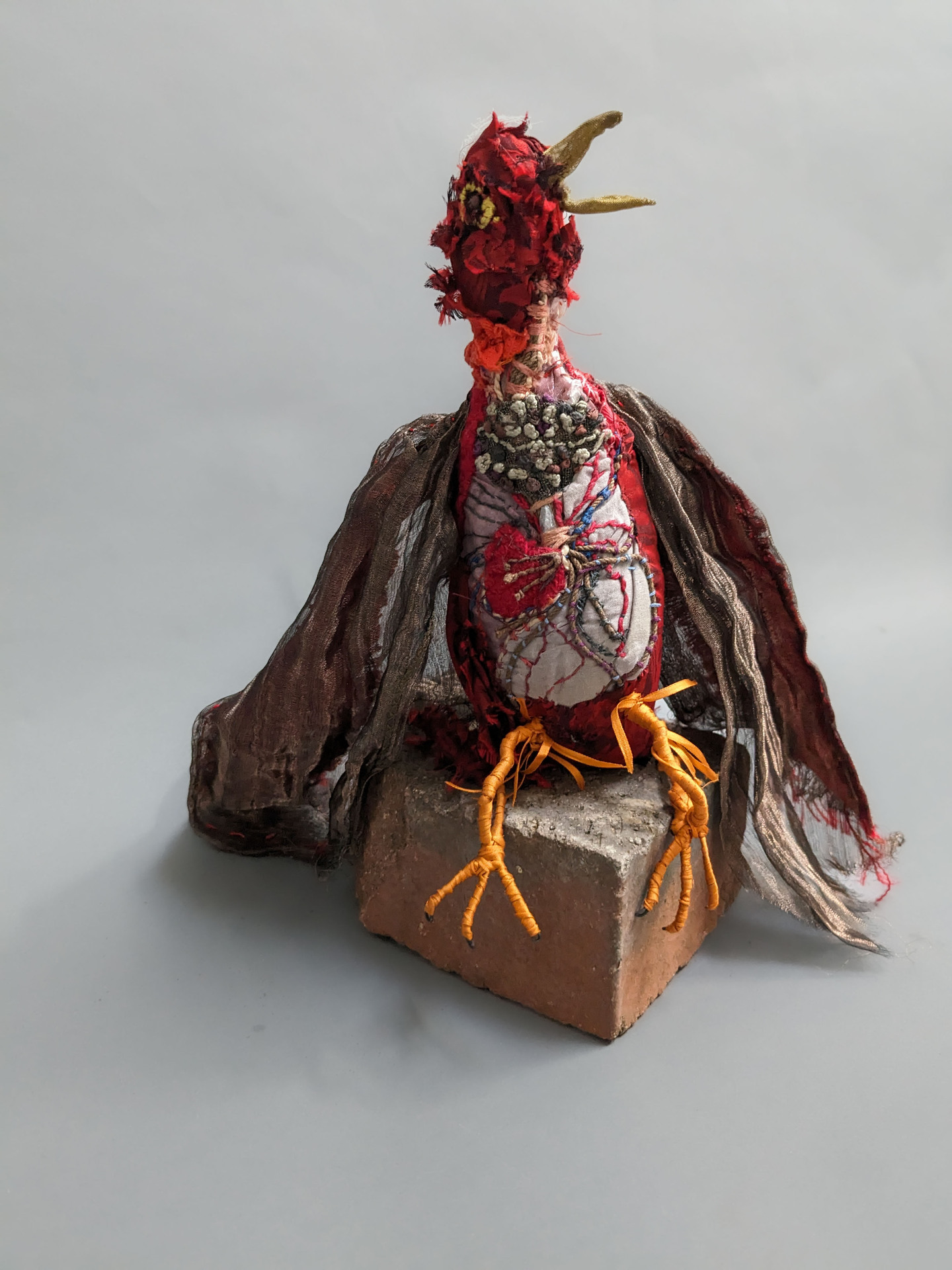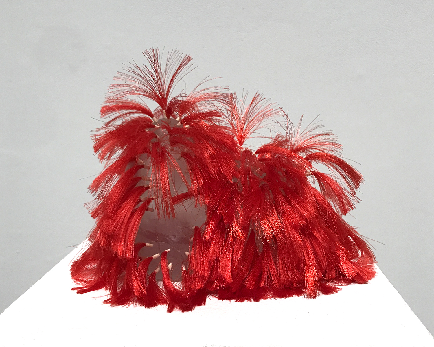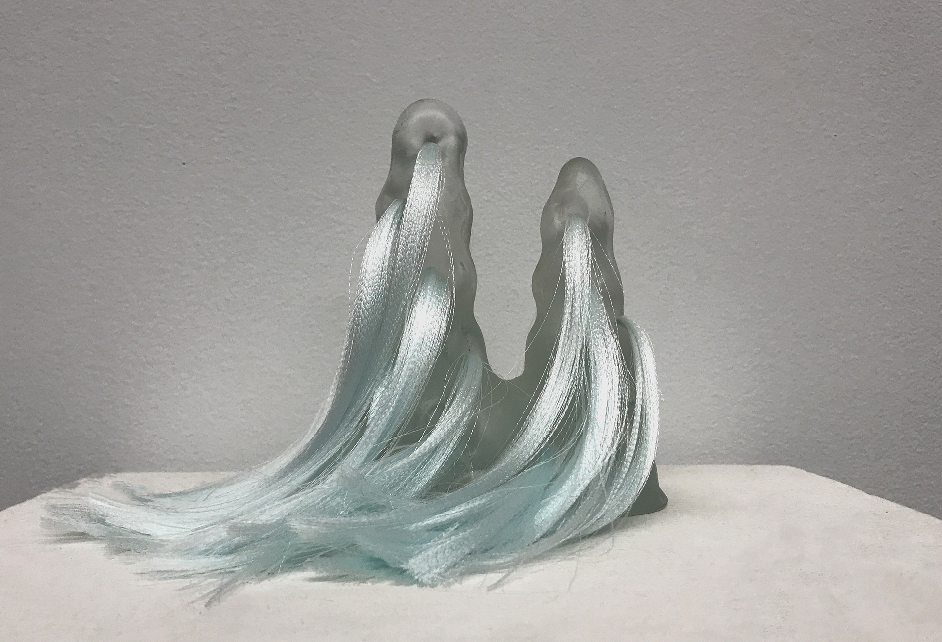 Ivy Anderson, An Unlikely Pair, 2024. Found objects, acrylic, elastic [5.25" x 9.25" x 8.5"].