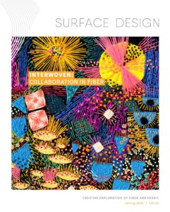 Surface Design Association is excited to announce our Spring 2020 edition of Surface Design Journal: Interwoven: Collaboration in Fiber. “Collaboration can take on many forms. Artistically speaking, it can have the wondrous effect of strengthening community, at home or across the globe. The 2020 Spring edition of Surface Design Journal explores what happens when creative minds come together—whether through intimate exchanges between life-long collaborators or personal journeys that reveal the fruits of working together in unexpected ways—it is often remarked that we reach our fullest potential when we join forces.” – Elizabeth Kozlowski, SDJ Editor