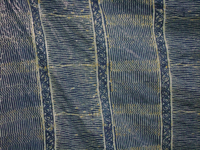 October, 2007: Another long road led to Bangladesh, where we filmed at Aranya, the fair-trade organization founded by the amazing Ruby Ghuznavi, a passionate advocate for natural dyes and the sustainability of traditional Bengali textile techniques such as jamdani weaving and kantha embroidery. She was also instrumental in reviving indigo dye-making in Bangladesh. We filmed artists working in kantha, block printing wax resist and block printing with indigo on silk.