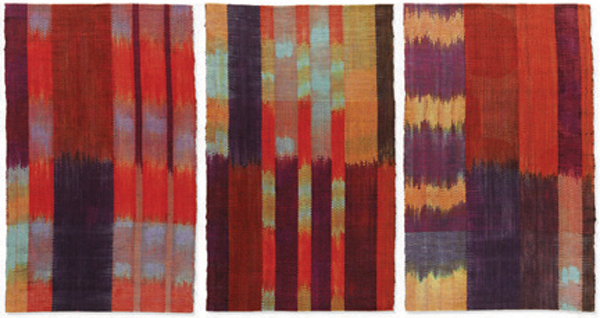 She describes this series as “… always a surprise” perhaps because she designed and wove them using color guidelines that she devised “using math and the twelve tones of the western classical scale.”