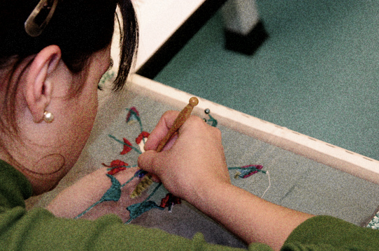 It doesn’t take any previous skill. We start everyone from the beginning. In fact, we have never found any particular “type” of person to be more adept at it than another. Previous embroidery experience does not matter.