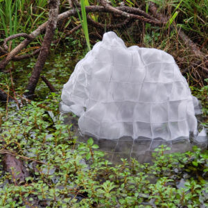 Korey Rowswell, Tragedy Magnet, 2021. Mixed fiber installation, 2 x 3 x 1.5 feet.