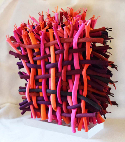 Cotton Lycra tubes of fabric, plexiglass, quilter's thread
