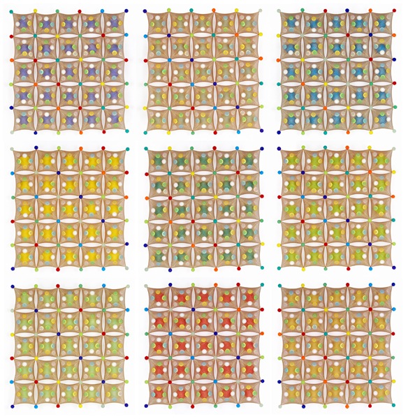 Lanny Bergner "Multiplicity" Bronze mesh, glass frit, silicone, origami paper, wire. H83” x W80” x D4” 2009 Photo courtesy of the artist