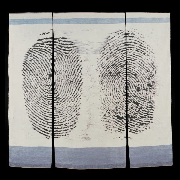 Mary Zicafoose "Blue Print" Triptych Weft face ikat tapestry. 82" (l) x 85" (w) 2009 Photo courtesy of the artist