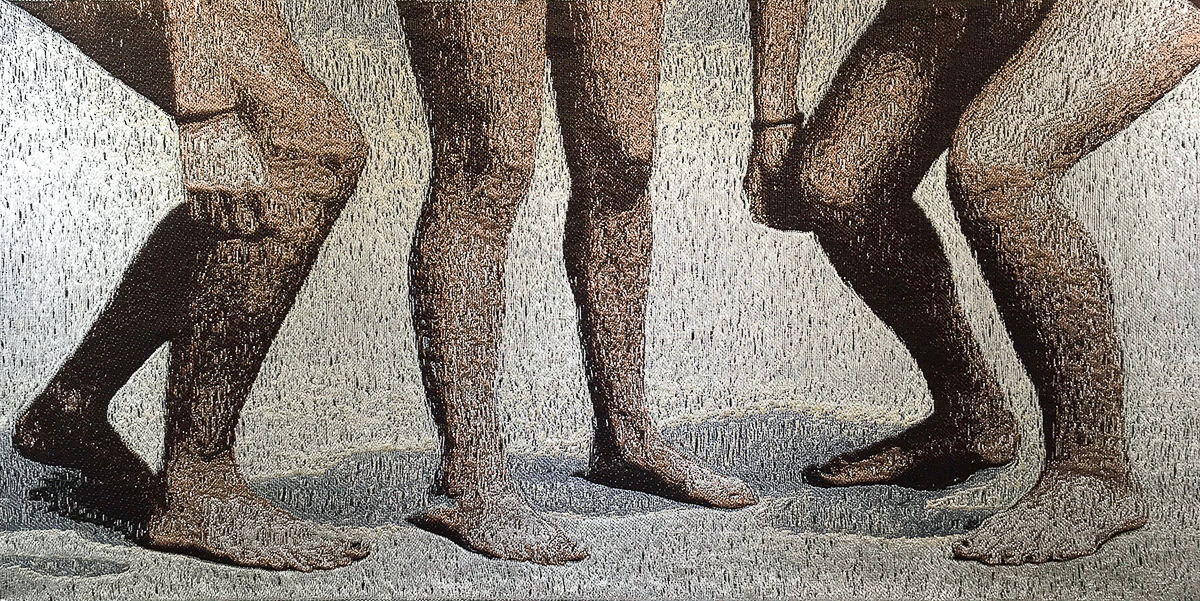 Dye Sublimation Print, Silk Shantung Fibres, Found Objects, Starch Fibre technique Installation of five artworks approx. 300cm in length - 1. (70cm x 50cm) 2. (80cm x 60cm) 3. (90cm x 60cm) 4. (90cm x 60 cm) 5. (70cm x 50cm)