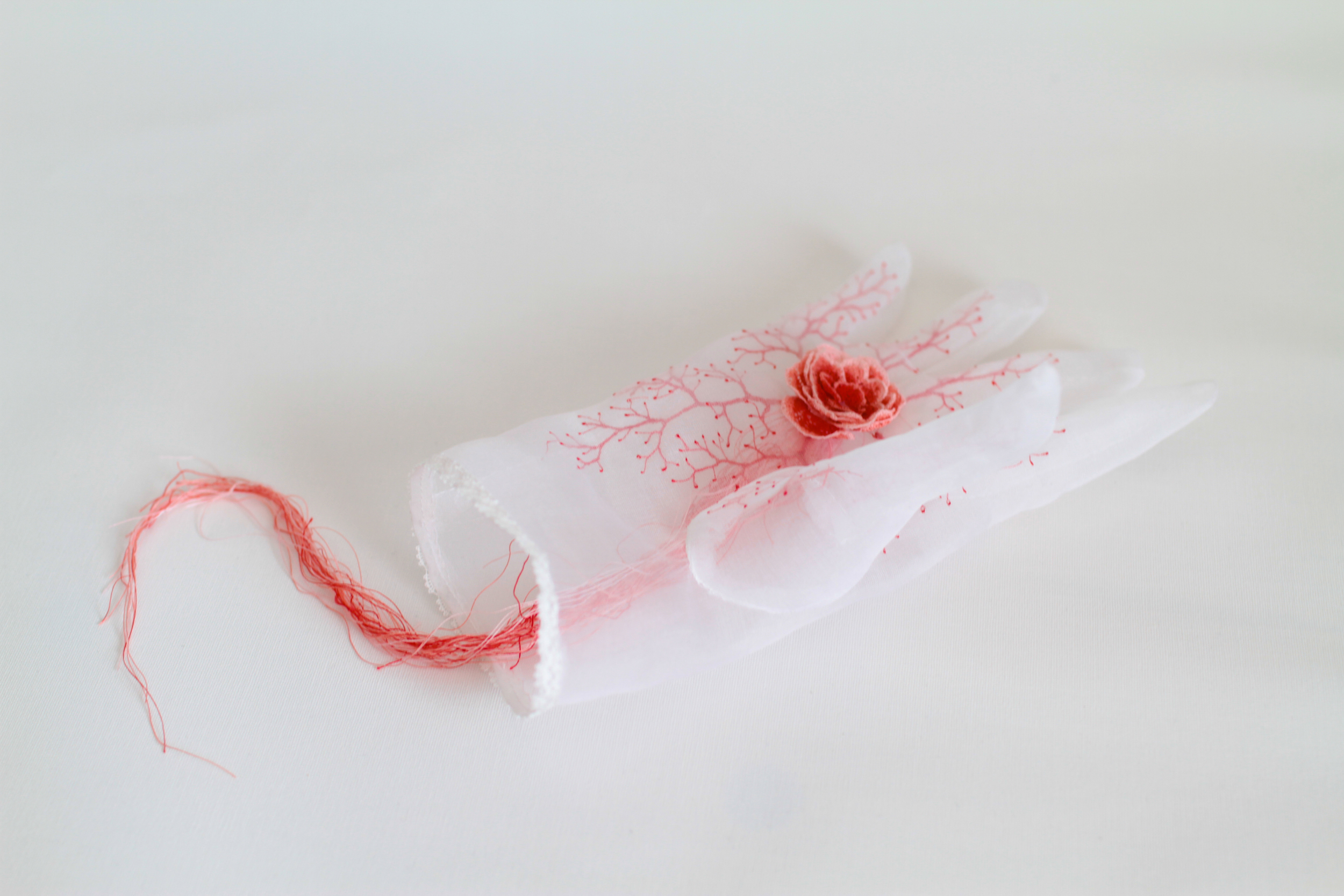 Silk charmeuse, embroidery thread 28.5”w x 38”h