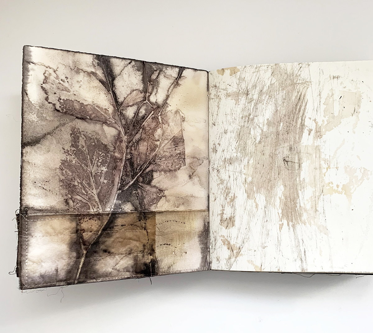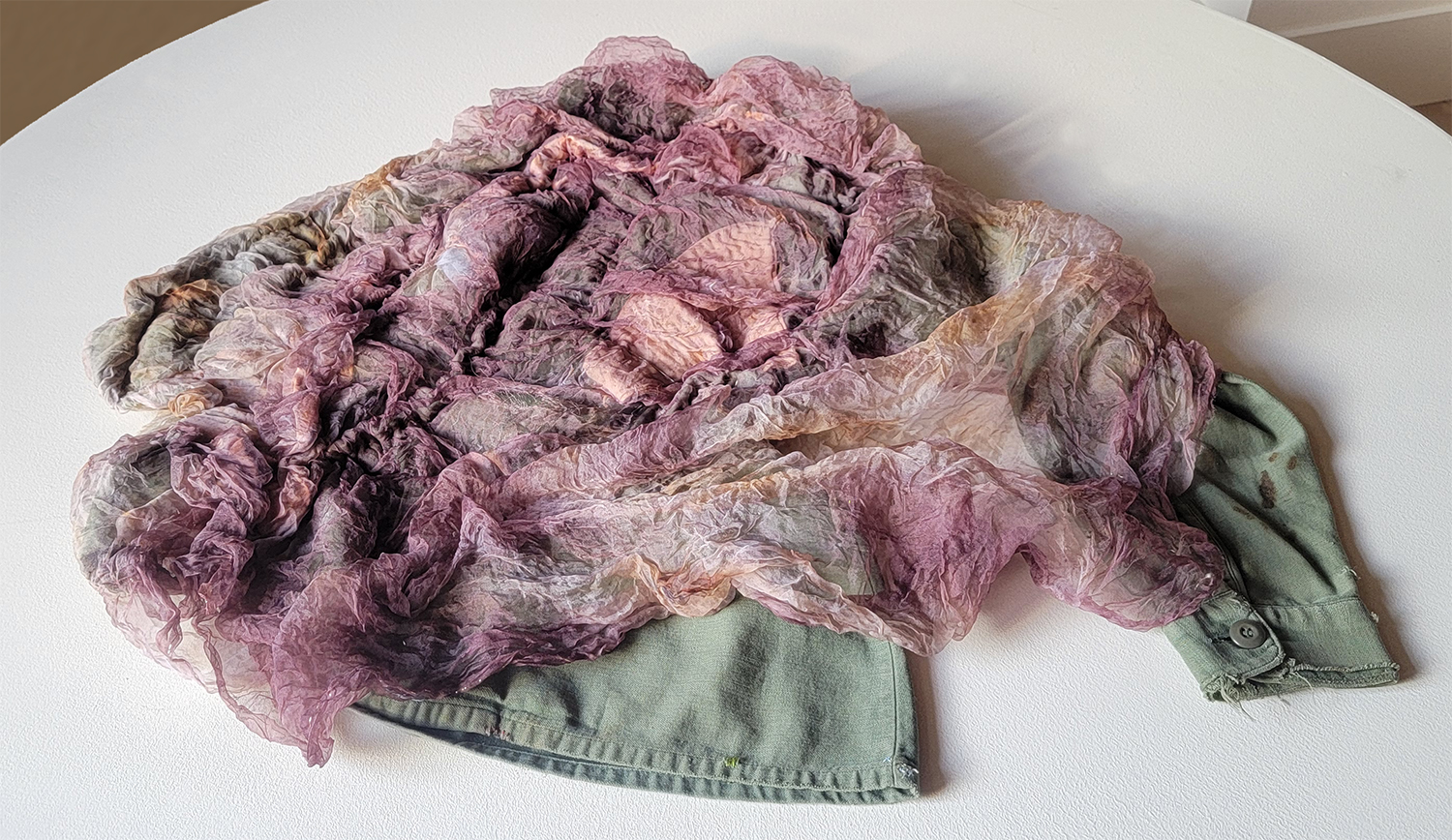 Eco printed silk satin 14" x 70"