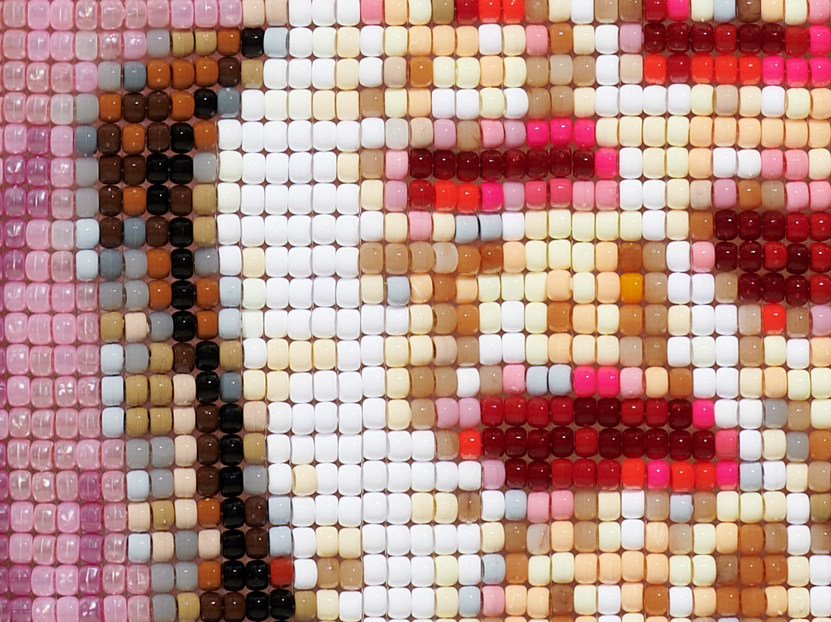 Plastic beads and acrylic yarn 36" x 50"