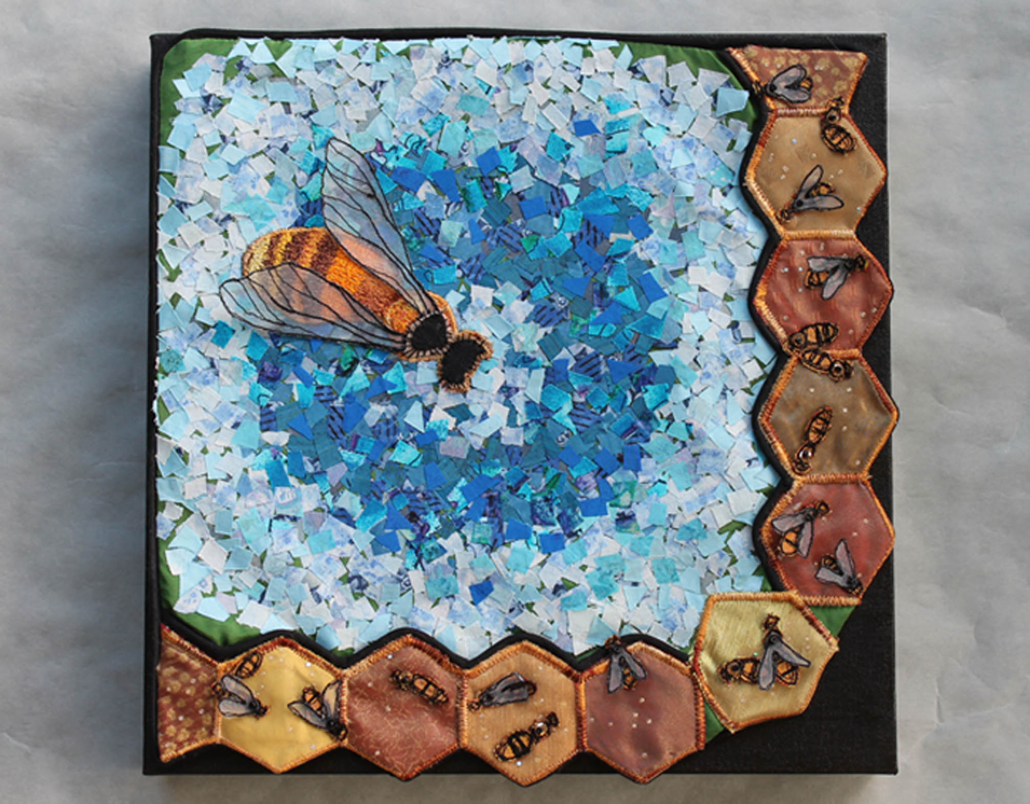 stitched, sublimation printed and painted textiles 63" X 63"