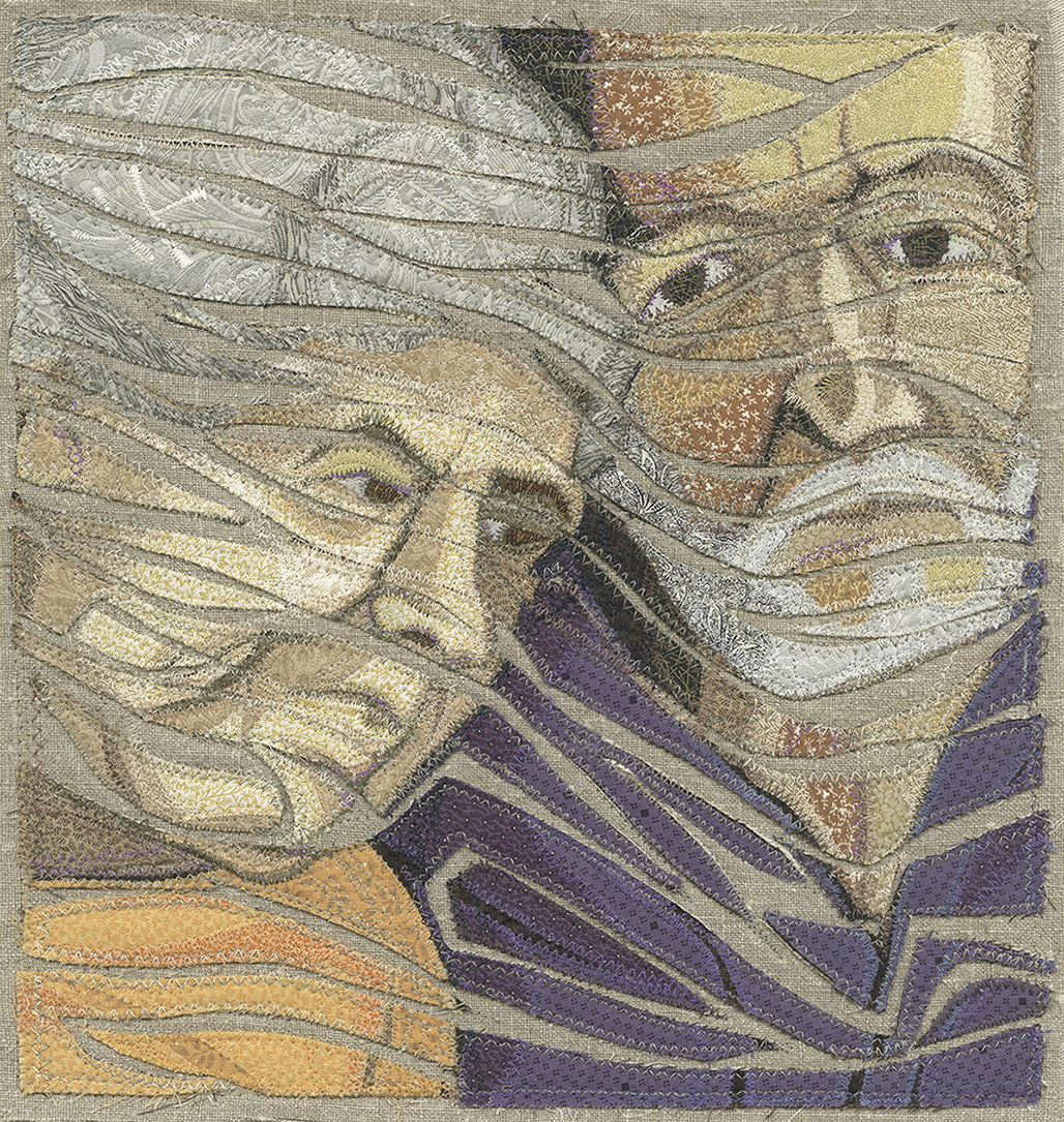 Silk, cotton, and archival marker on linen Two panels 16" x 12"