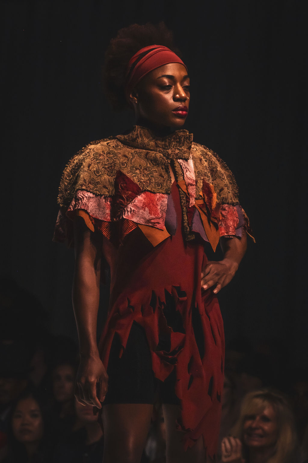 miscellaneous fabrics, batting, thread 29"H x 48"W