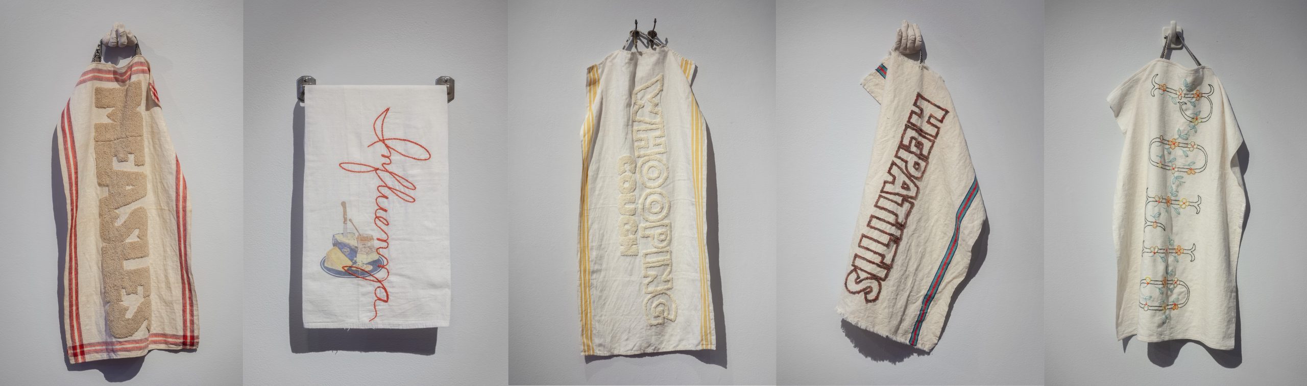 Vintage hand towels in cotton and linen, embroidery cotton, ceramic hands, vintage hangers variable approx. 30x15 in.